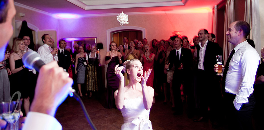 Sehr freut es mich auch typisch bayrische Elemente wiederzufinden, die gar nicht blau-weiß kariert sind. Die ‘Kirtahutschn’ zum Beispiel, ein dickes Holzbrett zum Schaukeln, das bei der Kirchweih immer aufgehängt wurde. Eine Kindheitserinnerung der schönsten Art findet nun ihren Platz im Hochzeitskonzept und wiegt sanft ein herrliches Blumenbouquet hin und her. Auch die handgeschnitzten Tierfiguren der Urgroßmutter fanden in der Tischdeko einen würdigen Platz zwischen den farbenfrohen Blumen.