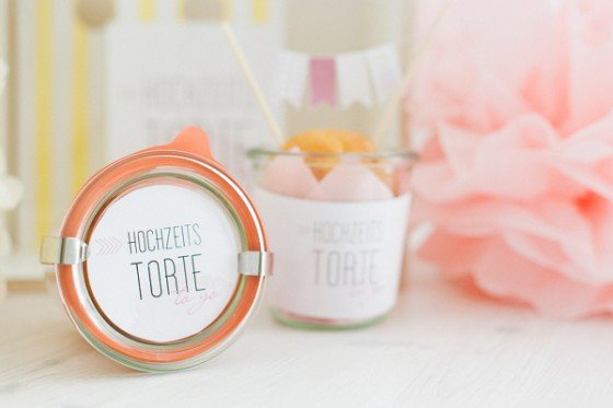 In Gläsern mit Korkdeckel und der Aufschrift ‚Love‘ kommen die Erdnüsse gut zur Geltung. Die gelbe Tassel-Girlande, Zitronen und goldene Diamanten-Cupcake-Topper greifen das Farbschema der festlich dekorierten Tische auf.