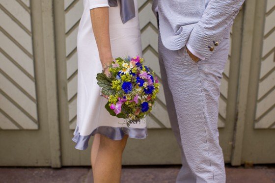Übrigens: Schleierkraut ist wieder groß im Kommen! Nicht als einzelner Stängel im Strauß, aber wohl als einzige Blume in neuer Form. Als Kugel zum Beispiel, wie sie in der Location hing. Oder als Haarschmuck.