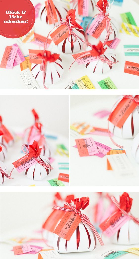 - Befestigt die Spruchanhänger mit einem Band am Geschenk.