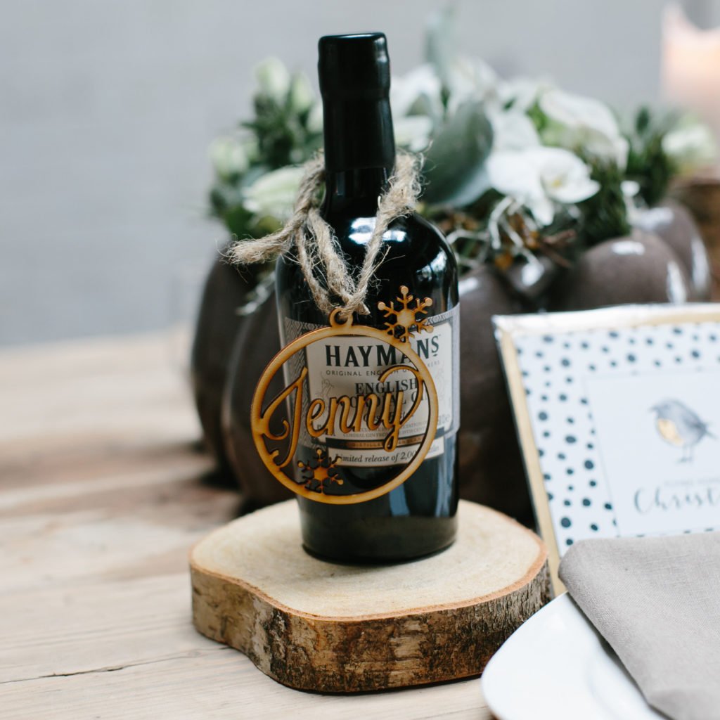 - Bindet sie mit dem Garn zu und befestigt Geschenkanhänger und Freebie Spruchanhänger am Garn.