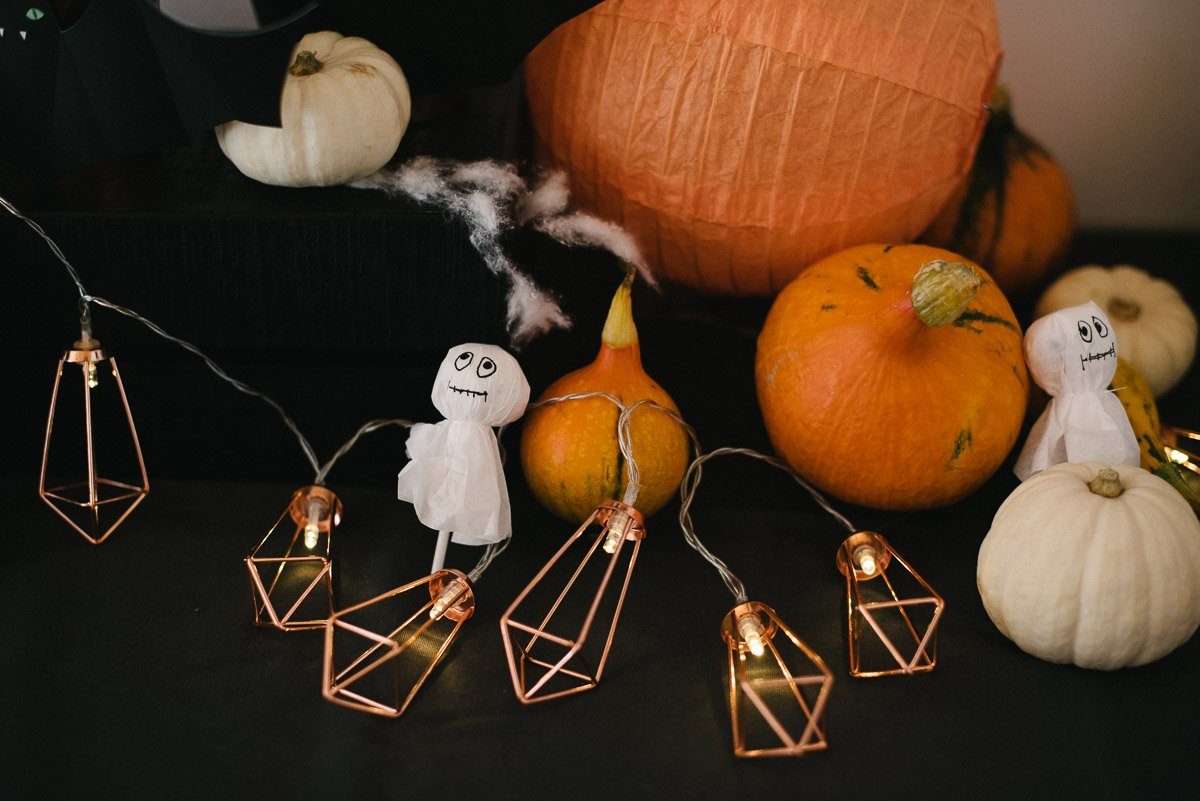 Trick or treat? Süße Snackplatte, buntes Deko-DIY und Gipsgeist- Bastelidee. Damit wird der Kindergeburtstag zum besonderen Erlebnis.