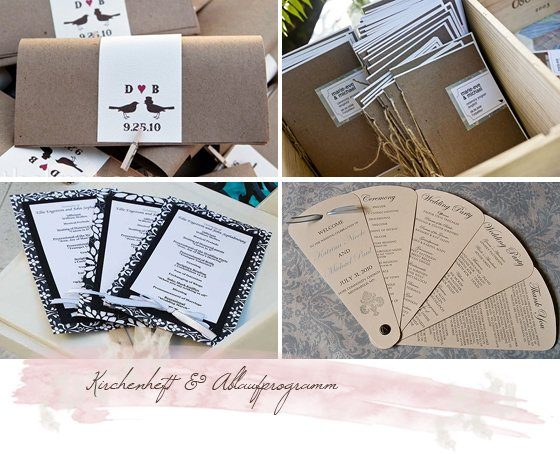 Einladungskarten, Menükarten, Namensschildchen und Geschenkanhänger sind aus der Anfangsidee entstanden. Auch Danksagungskarten, Serviettenbanderolen und Gästebuchkarten gehören inzwischen dazu.