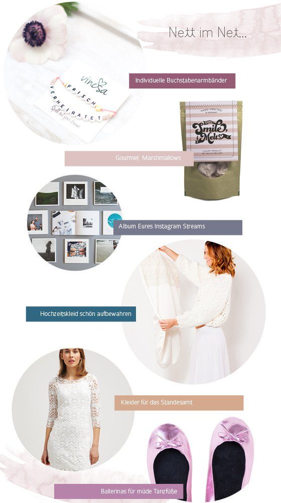 Also, kommt mal mit und schaut, was mit im Februar über den Weg gelaufen ist. Ballerinas für müde Partyfüße zum Beispiel oder ein wirklich hübscher Kleidersack, der Euer Hochzeitskleid gebührend beheimaten kann. Und dieses süße Armbändchen mit Eurer Wunschbotschaft. Zucker!