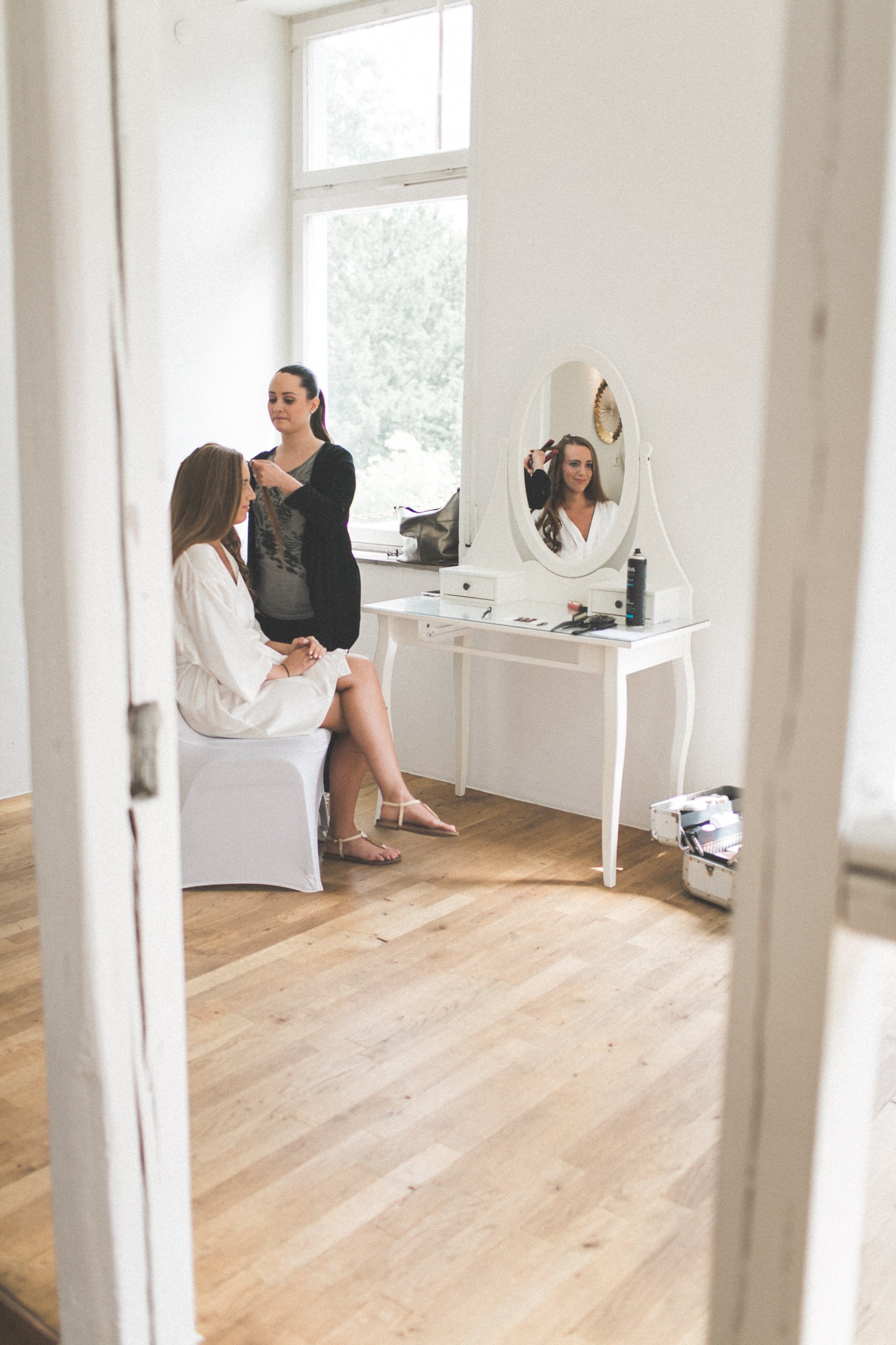 Das Getting Ready wurde praktischer Weise direkt in den Räumen der späteren Feierlocation durchgeführt. Die Stylistin kam dort hin und verwandelte Betty in eine wunderschöne Braut!