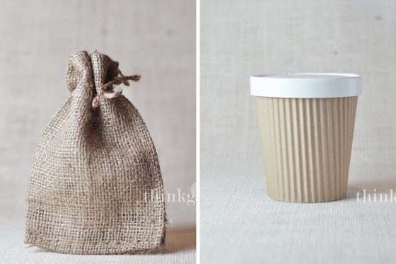 Blanco Pappbecher, weiße Schachteln, Tütchen zum schöner Verpacken