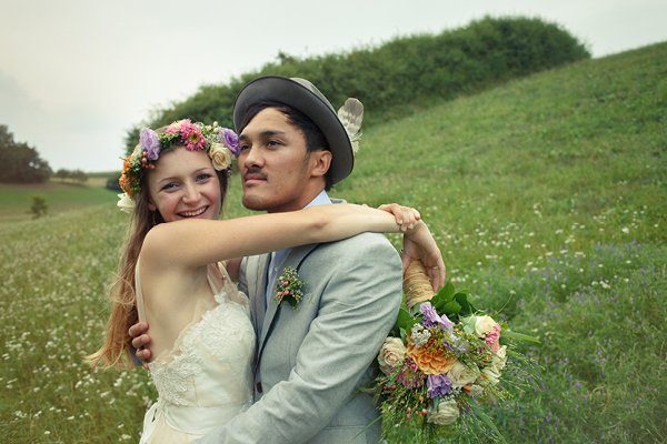 Die Festwiese gehört Freunden, die Fotografen waren befreundete Mediendesignstudenten, die Deko hat Salomé entworfen und gebastelt (genau wie die komplette restliche Papeterie), die Blumen waren von einer Gärtnerei in einem kleinen Dorf in der Nähe, der Bus gehört der Schwester von David, die Cupcake-Hochzeitsetagere aus Holzscheiben war selbst gebaut und die Küchlein von der Schwiegermama gebacken, die Band waren Freunde.