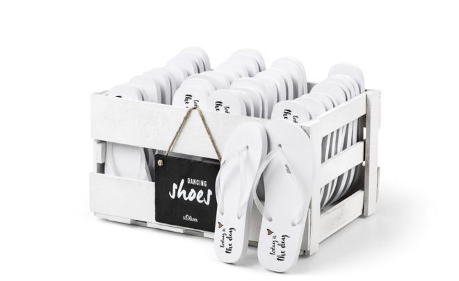 Ich tanze auf Hochzeiten meist irgendwann barfuss. Für unsere Hochzeit wären die Flip Flops ein super Highlight!