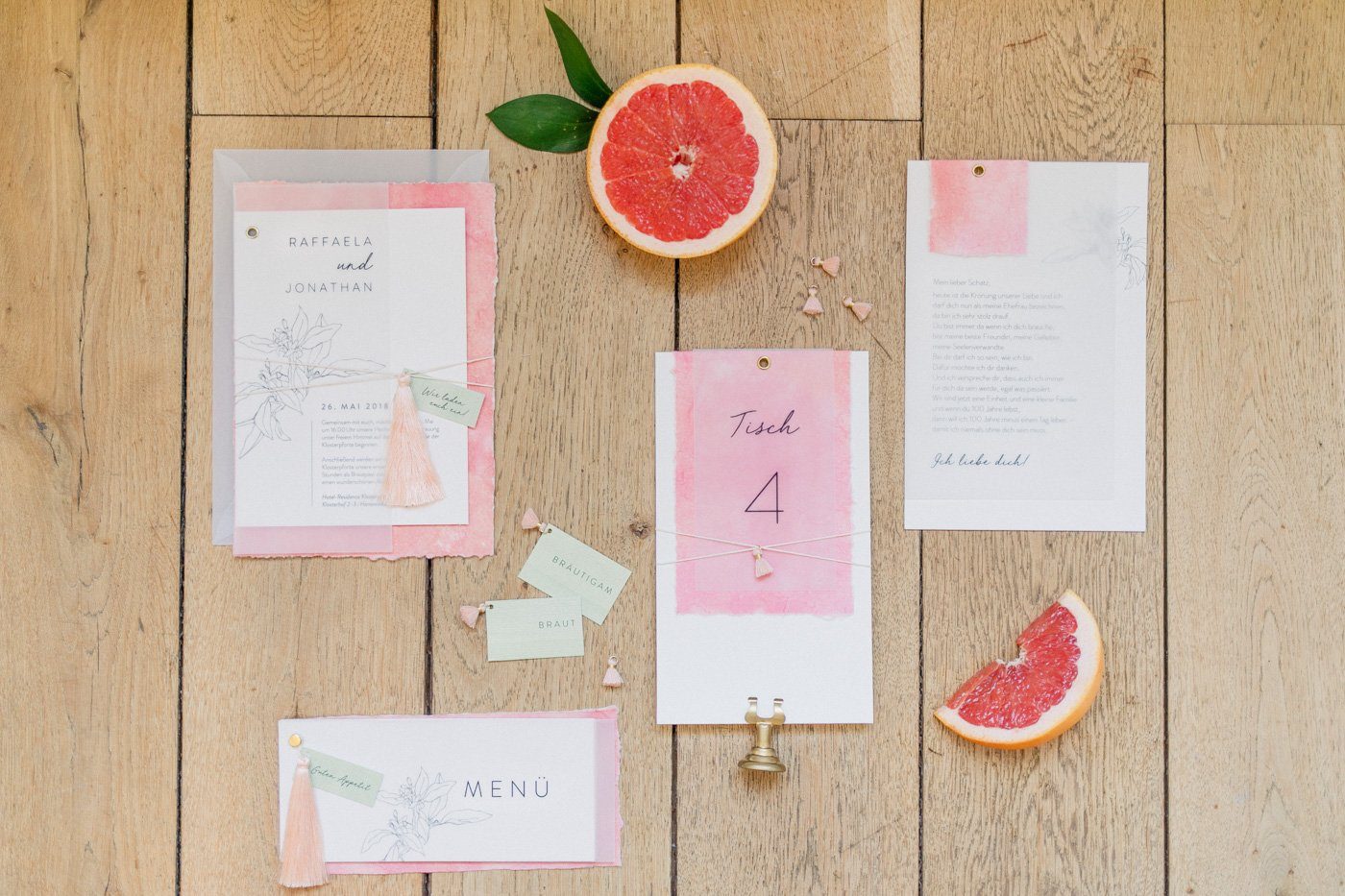 Bunt, fröhlich, aber doch elegant sollte es sein – das Wedding Styled Shoot rund um das Thema Pink Grapefruit. Es versprüht ein Gefühl von Sommer, guter Laune und einer wunderbar leichten Hochzeit.