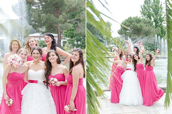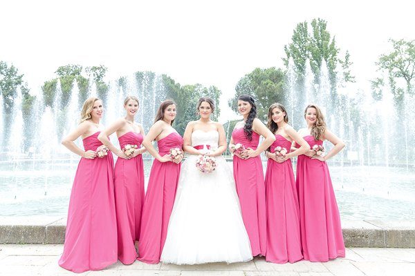 Vor allem die Brautjungfern strahlen in pretty pink, und manch eine von Euch kennt bestimmt die Kleider von David’s Bridal, das sind auch welche und die Mädelstruppe ist nach London geflogen und hat die Kleider direkt vor Ort gekauft, könnte man mit dem JGA verbinden? Und dann nehmt Ihr noch einen Fotografen mit …