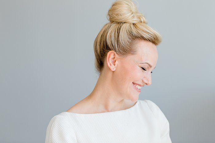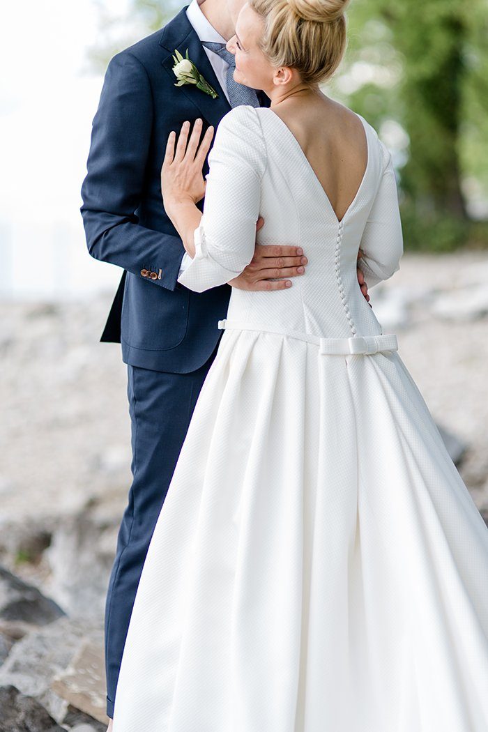 Den ganzen Tag über trägt die Braut nicht nur ein phantastische schlichtes und elegantes Kleid, sondern auch ihr schönstes Lächeln. Ich mag es sehr wie der lässige Dutt zu ihrem Typ und dem gesamte Styling passt. Es muss nicht immer die Hochzeitshochsteckfrisur sein!