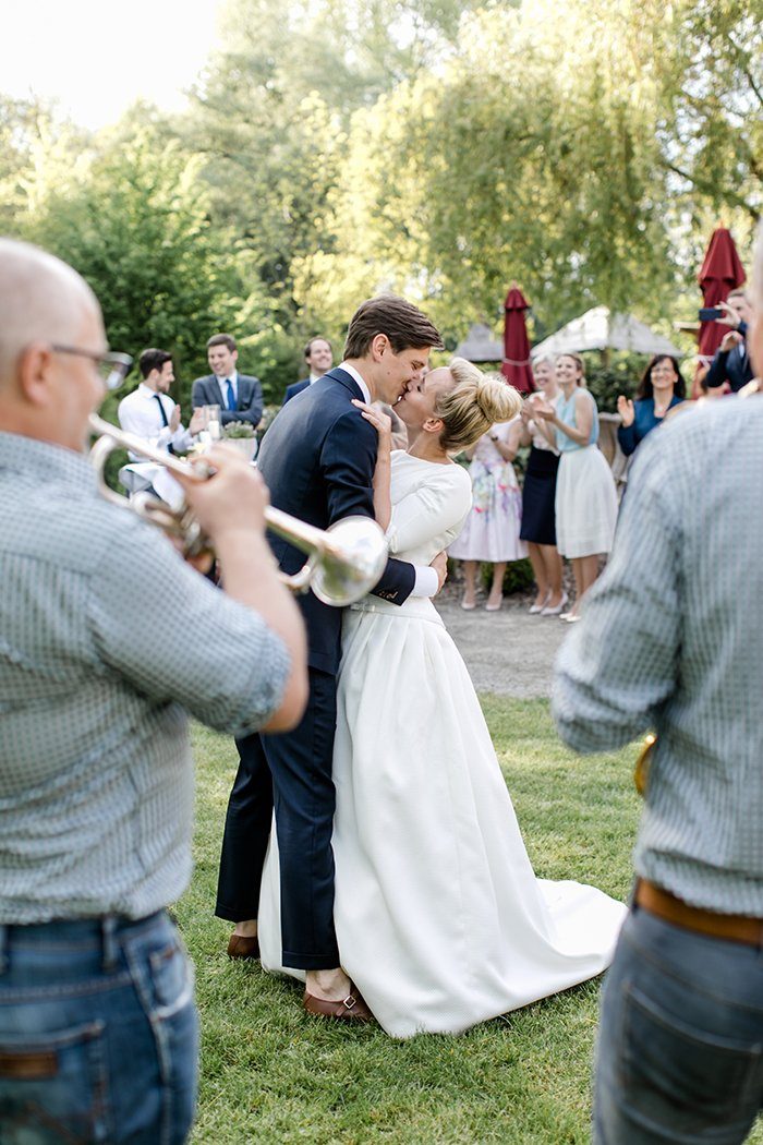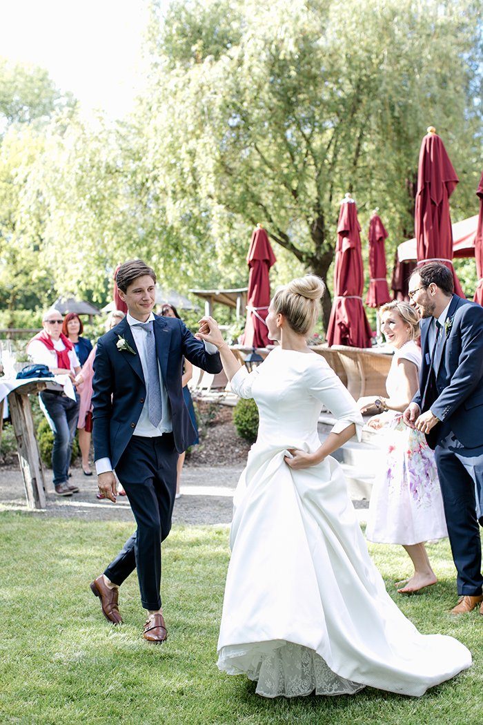 Wenn alles so perfekt ist, kann man auch schon mal vor Freude tanzen, oder? Warum also nicht den Hochzeitstanz vorziehen und barfuß über die Wiese zur Livemusik das Tanzbein schwingen?! Auch dies trägt zur ausgelassenen Stimmung bei.