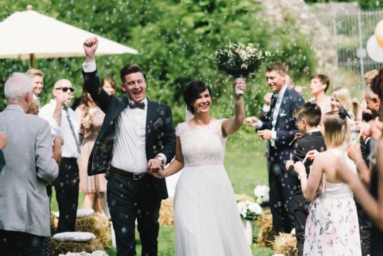 Bei der Sommerhochzeit von Snez und Marco auf der Maisenburg passten der rustikale Charme der Maisenburg und die sommerliche Leichtigkeit der hellen Dekoration perfekt zusammen.