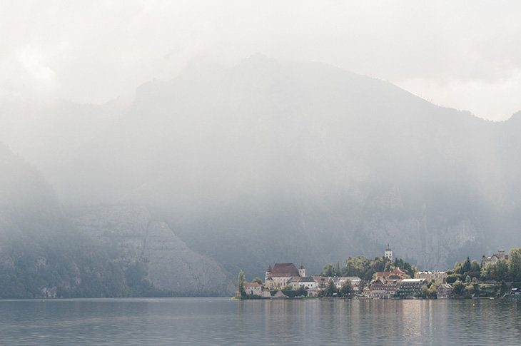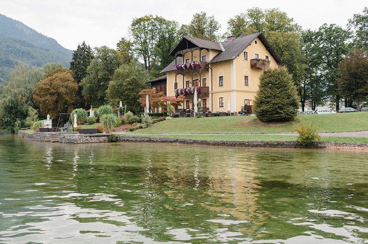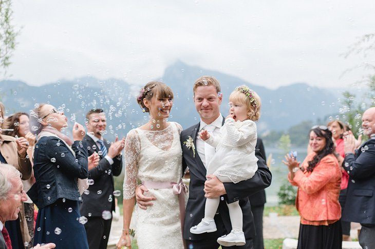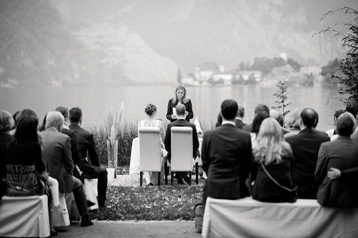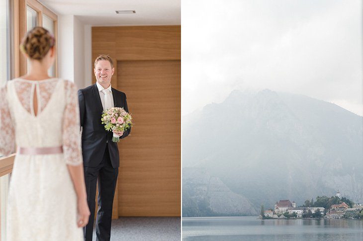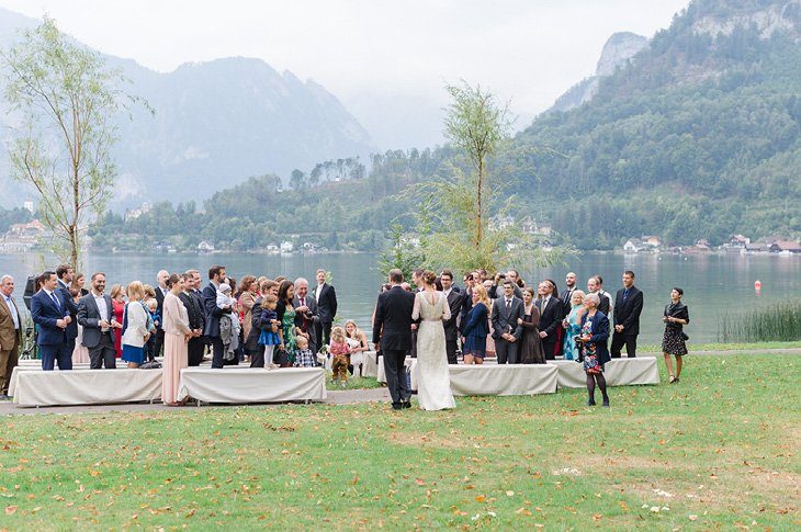 Ja-sagen mit Blick auf den See und den liebsten Menschen um einen herum. Diesen Traum haben sich Bernadette und Jochen im Herbst am Traunsee im österreichischen Salzkammergut erfüllt. Trotz der fortgeschrittenen Jahreszeit hatten die beiden Glück mit dem Wetter. Petrus schickte zwar ein paar stimmungsvolle Nebelschwaden am Morgen, doch am Nachmittag konnten die Gäste und das Paar die Trauzeremonie im Freien feiern.