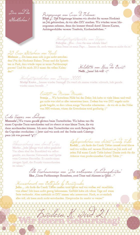 Oh wow, da steht ja mein Kommentar oben in der Liste. Tausen Dank jetzt schon für die süssen Cake Topper! Wir freuen uns riesig!