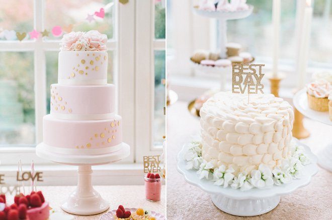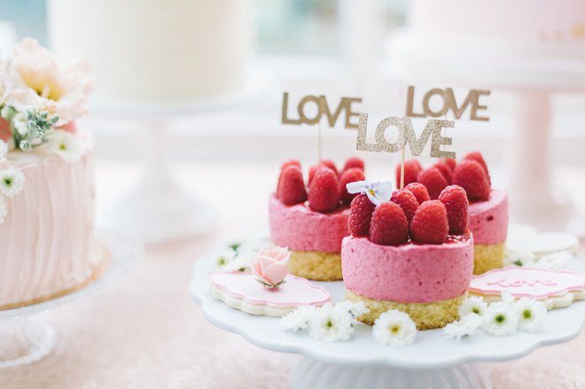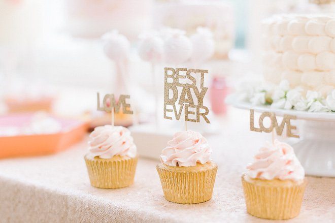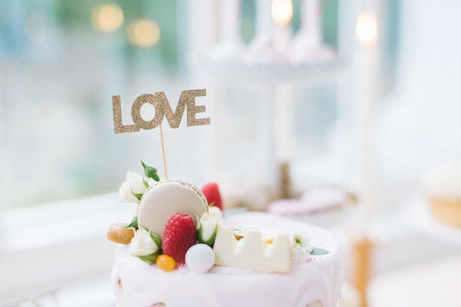 Gekrönt werden die süßen Köstlichkeiten von frischen Früchten und glitzernden Cake Toppern in Gold: Best Day Ever Set und Love Set.