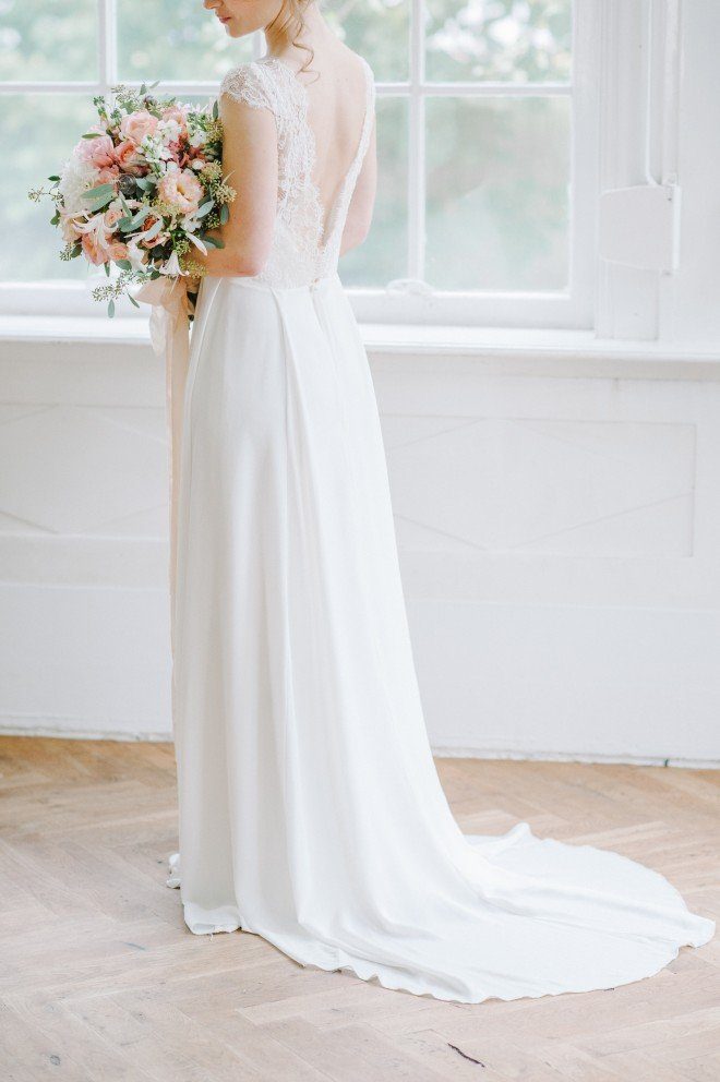 Unser Model Marina trug ein wunderschönes, schlichtes Kleid von Sarah Seven, das Ihr zum Beispiel im Hey Love – Bridal Concept Store München anprobieren und erstehen könnt. Der weich fließende Stoff und die zarten Spitzenärmelchen sind nicht nur für Bräute sondern auch für Fotografen ein Träumchen. Alexandra Stehle und ich haben das Shooting fotografiert und hatten einen riesen Spaß mit all den schönen Details.
