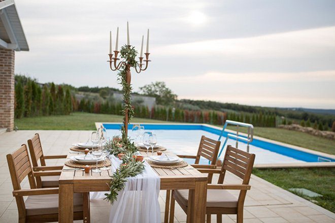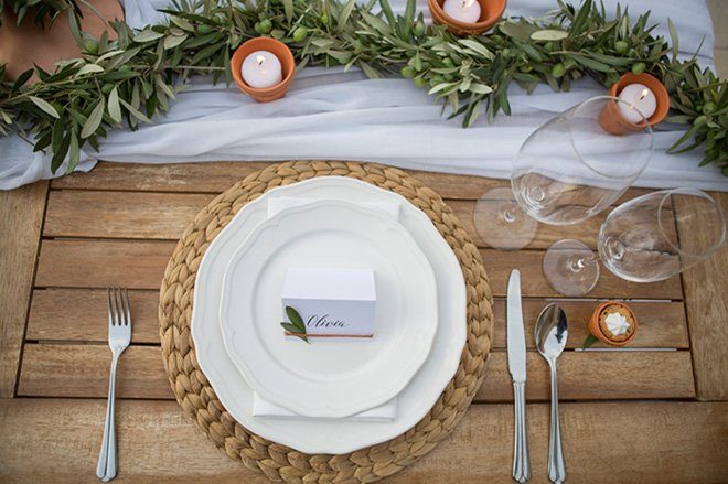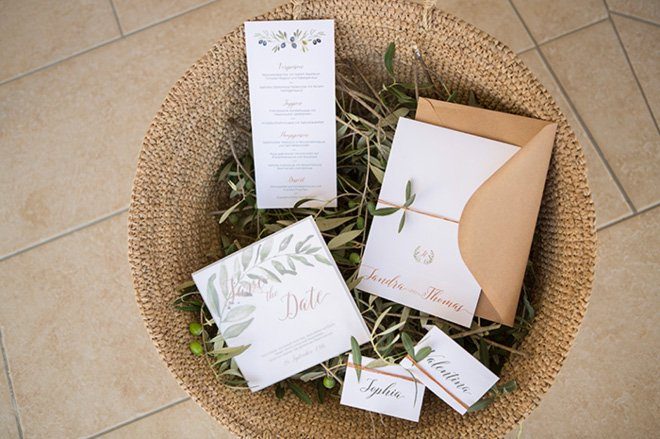 Ein kreatives Team um Hochzeitsplanerin Stephanie von Liebesdienst hat dieses mediterrane Shooting in Kroatien umgesetzt. Olive und Terrakotta – Elemente aus der natürlichen Umgebung der Location – bildeten von ganz alleine die Basis des Shootings. Dekoration und Farbpalette leiten sich daraus ab und auch die Papeterie von Heartpaper hat es leicht sich daran zu orientieren. Selbst der Brautstrauß spielt gerne mit. Auch hier kommen die silbrig grünen Olivenzweige herrlich zur Geltung.