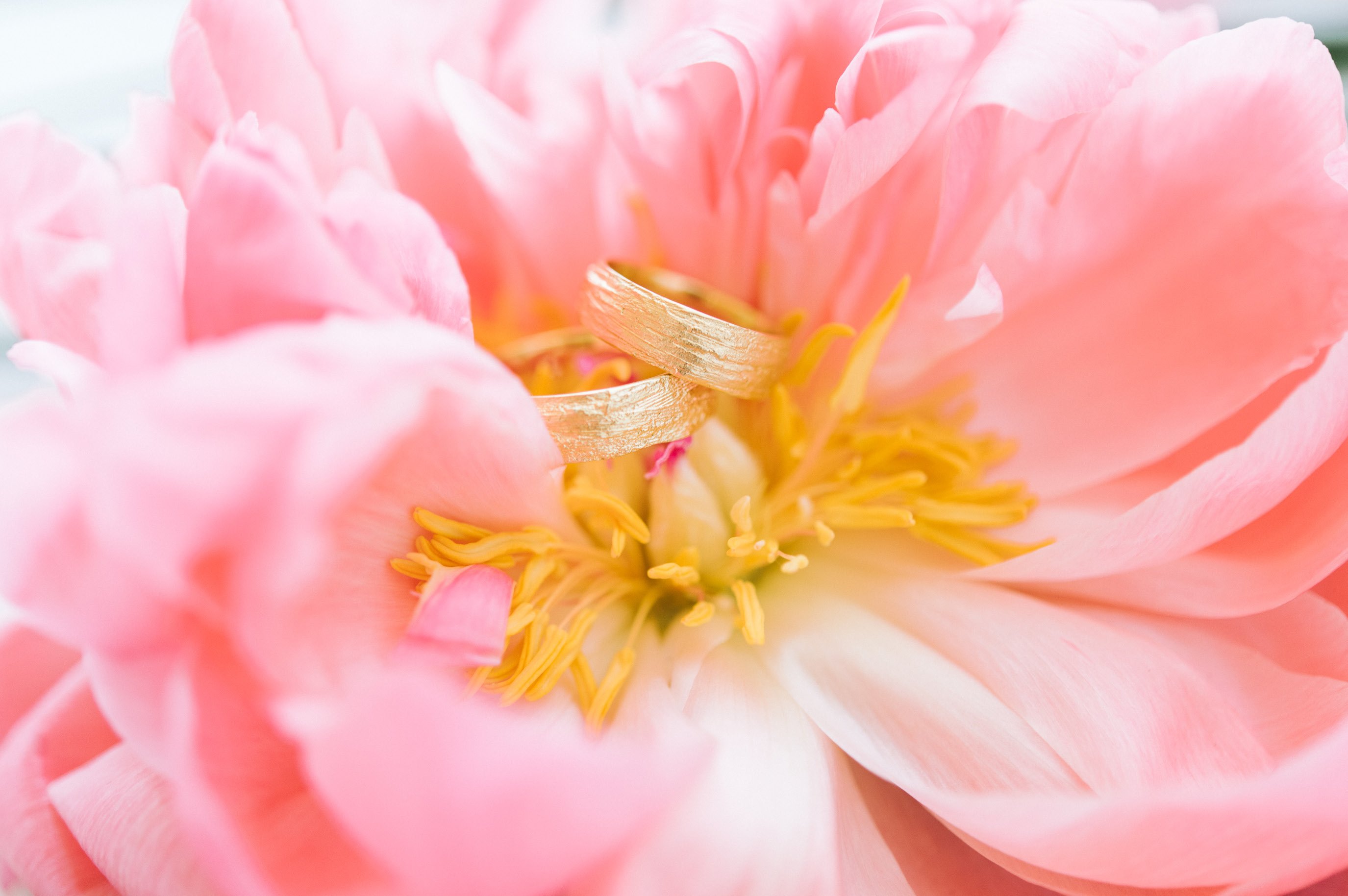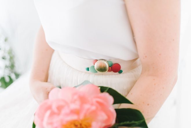 Mit dem hübschen Schmuck von Alexandra Baum war das Styling perfekt. Die goldenen Ohrhänger sind von kleinen Samenkörnern inspiriert und die Eheringe tragen ein feines Muster, wie man es auf einem Grashalm erkennen kann. Wer mag, lässt die Ringe mit Namen, Spruch oder Datum gravieren. Ein zartes Armkettchen vervollständigt den Look und macht auch nach der Hochzeit immer wieder Freude beim Tragen.