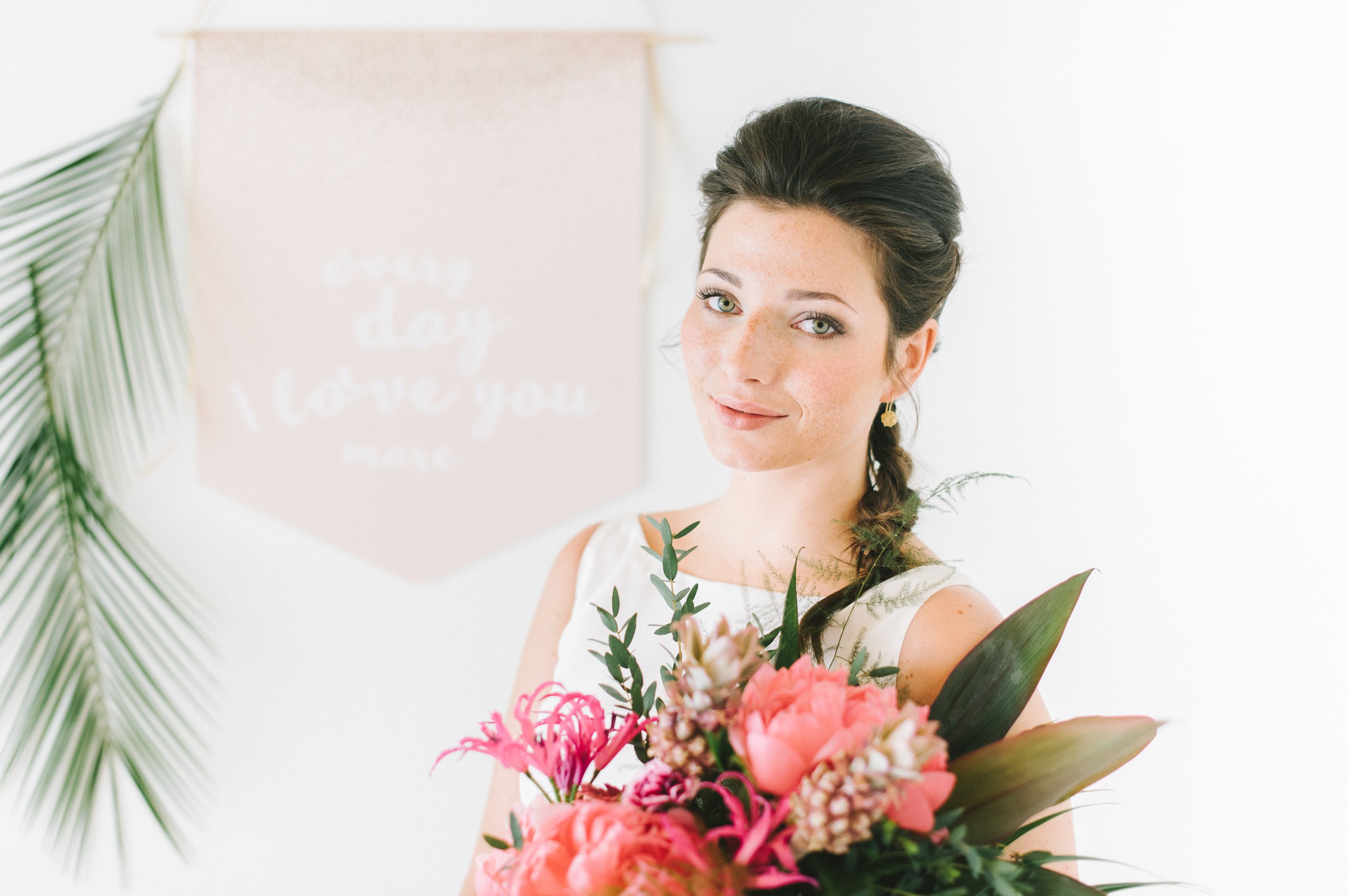 Und noch eine individuelle Anfertigung durften wir bestaunen: der große Wimpel an der Wand wurde für das Shooting designed und gedruckt. Mit seinem hübschen Spruch ist er ein toller Eyecatcher am Geschenktetisch, der Tanzfläche oder dem Photo Booth.