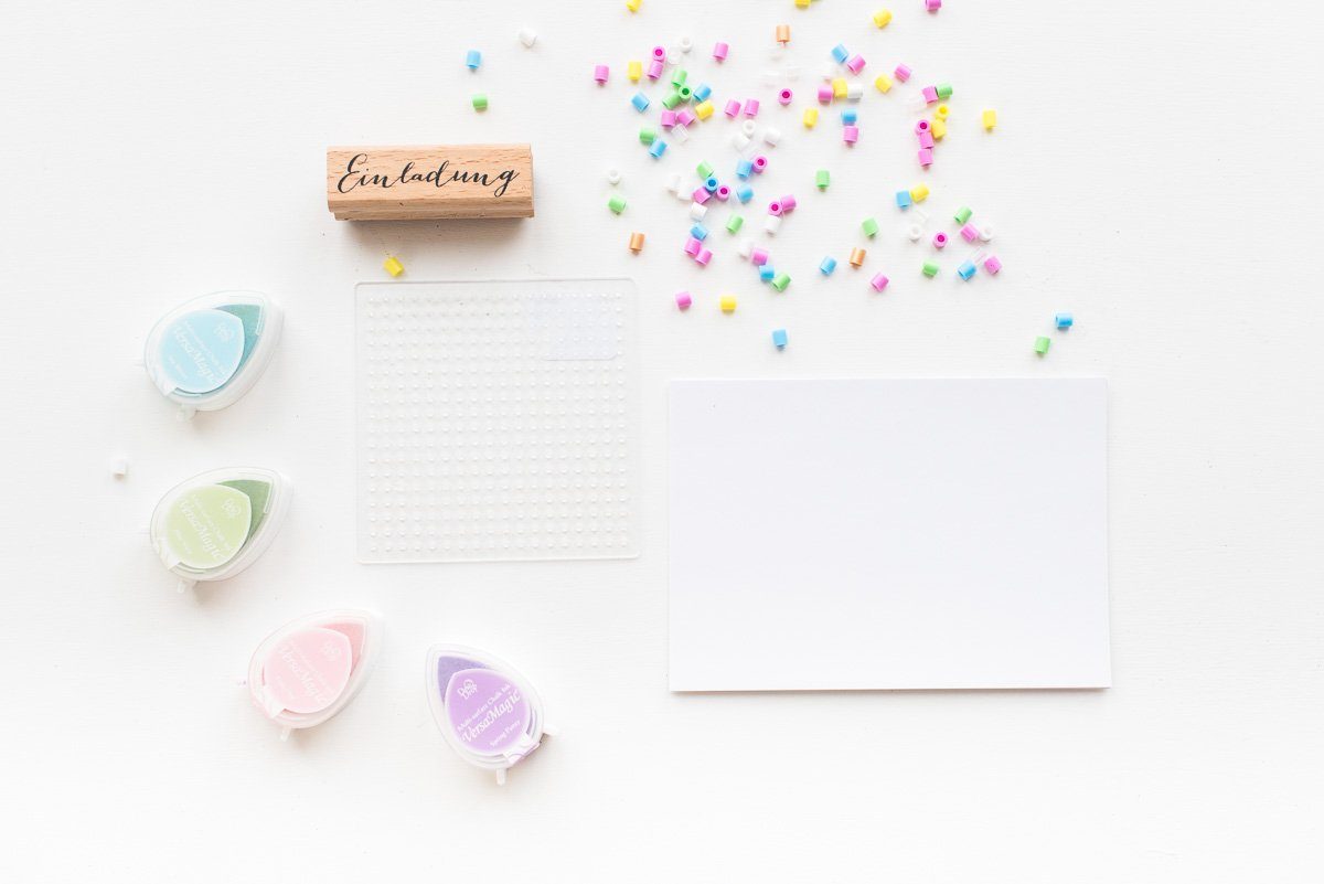 Die Einladung hatte ich Euch ja noch versprochen! Hier kommt sie! Die Idee mit den Bügelperlen kam mir, weil wir quasi täglich irgendwelche Bügelperlen Bilder machen. Die Mädels lieben die Dinger, sitzen hoch konzentriert am Tisch und stecken die Perlen auf die Unterlagen, was das Zeug hält.