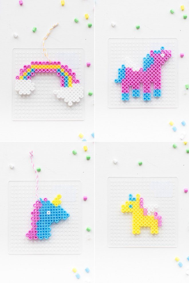 Hier kommt die Anleitung für Bügelperlen Einhorn und Regenbogen Stempel.