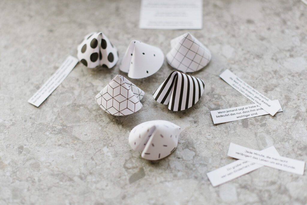Glückskekse aus Papier mit Vorlage zum Ausdrucken