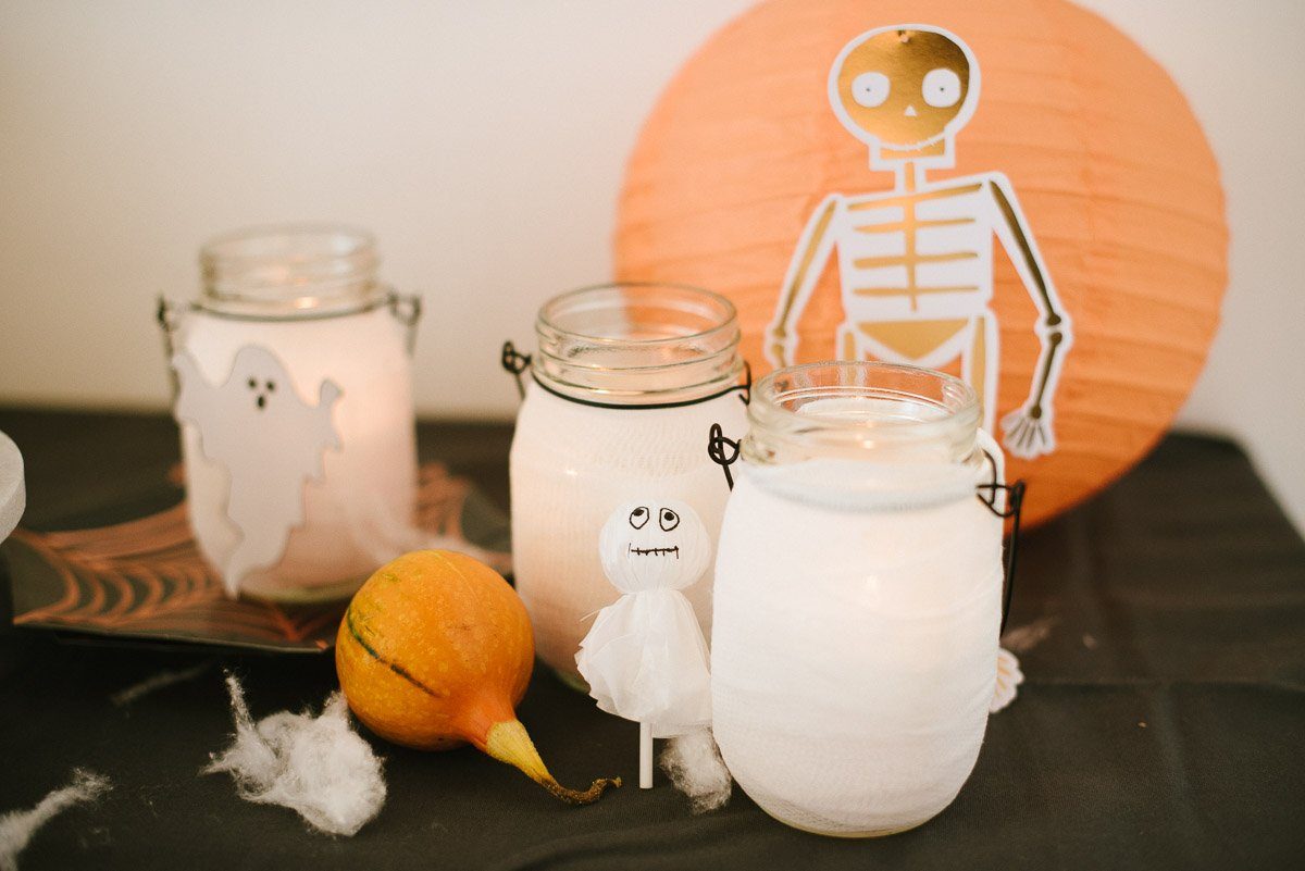 Auf dem PDF findet Ihr außerdem kleine Geister, die sich leicht ausschneiden lassen und sich auch für die kleinen Bastelfans eignen. Bestückt Strohhalme mit ihnen oder klebt sie auf mit Mullbinden umwickelte Gläser. Das ergibt tolle Windlichter!