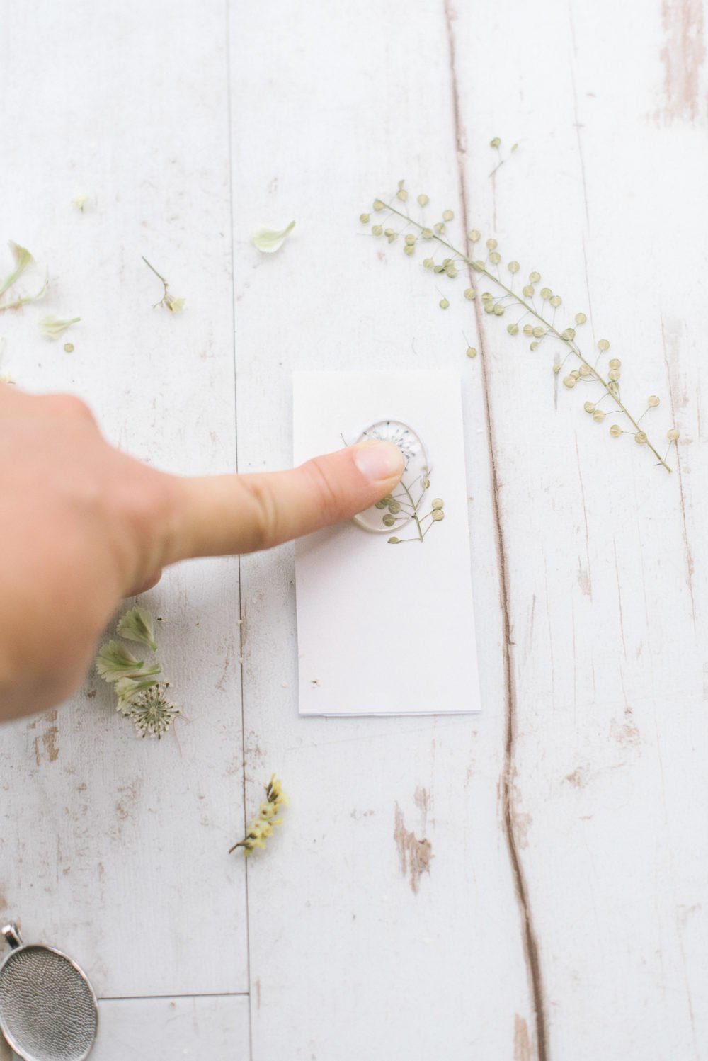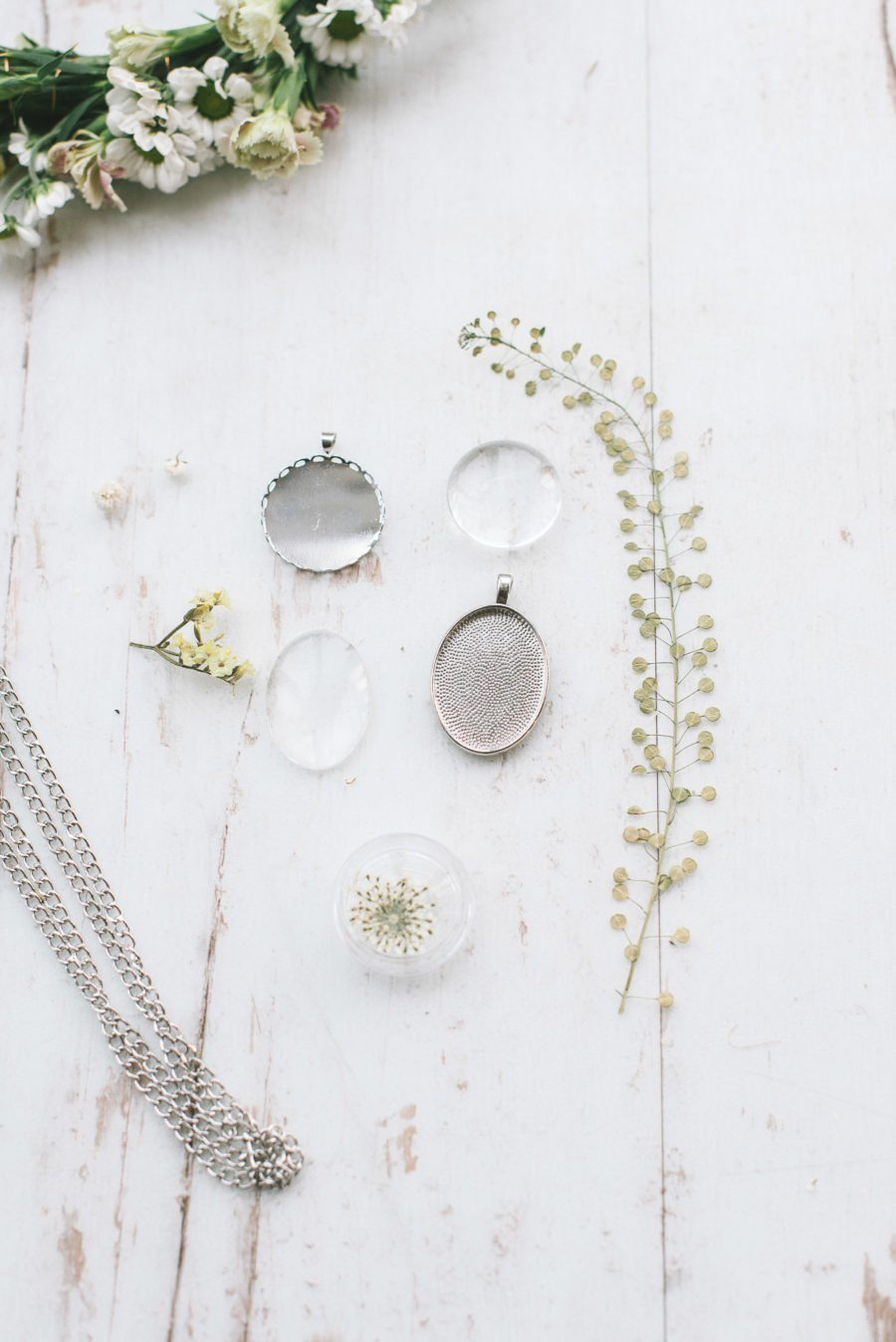 Mit getrockneten Blütenblättern oder kleinen Dolden lassen sich besondere Anhänger fertigen. Alles, was Ihr hierfür benötigt ist:
