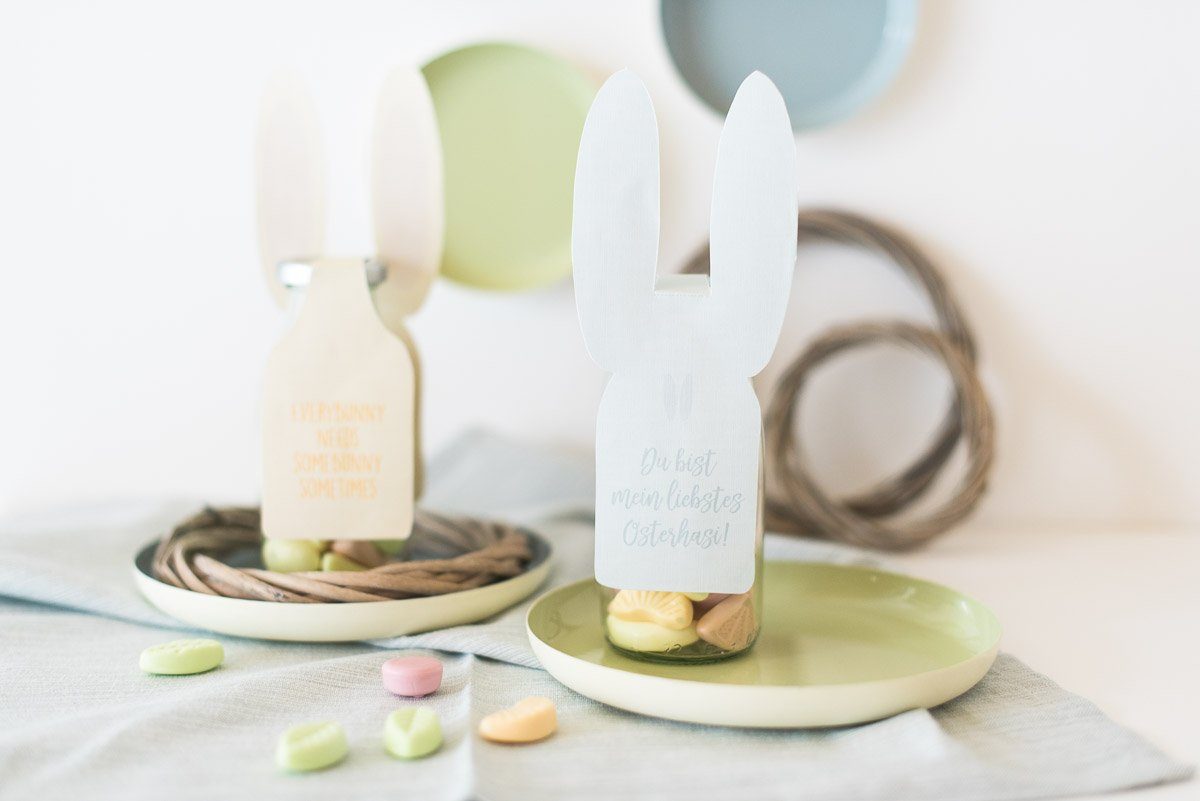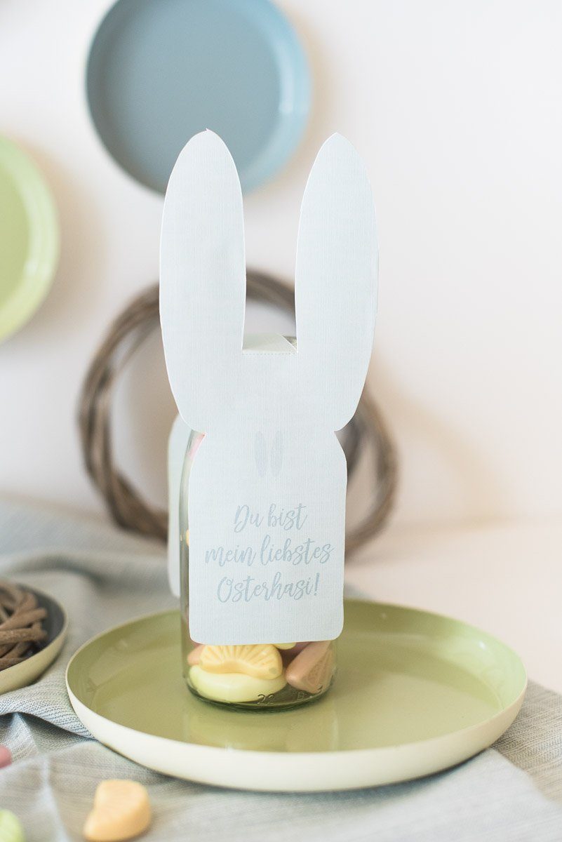 Süßes Ostergeschenk: Bunny Gläser mit Vorlage zum Ausdrucken