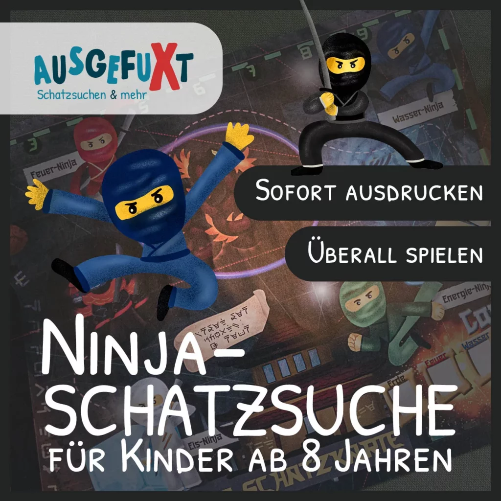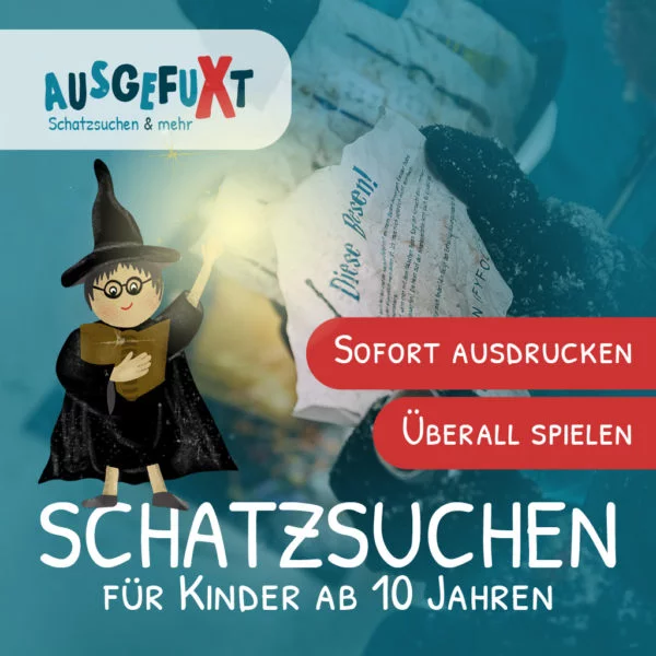 Ein richtig umfangreiches Sortiment an fertigen Schatzsuchen findet ihr bei Ausgefuxt – Schatzsuchen und mehr. (Werbung).