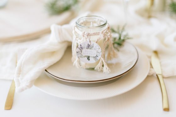 - Jetzt müsst ihr das lange Garn mit den Tasseln nur noch um eine unserer Kerzen im Glas binden. Fertig!