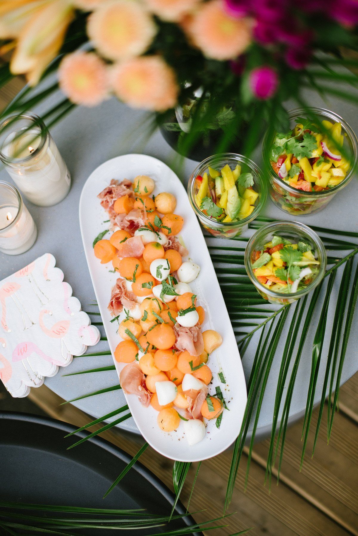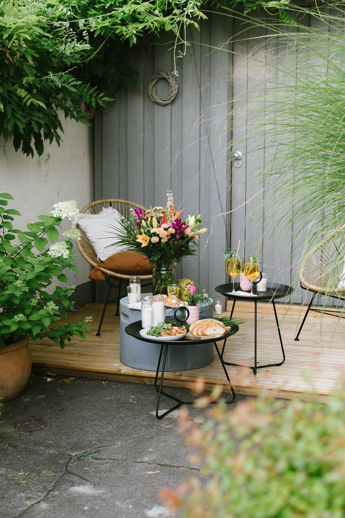 Viel Deko braucht es an diesem Abend nicht. Aber Licht ist wichtig. Die Kerzen im Glas sind ideal für alle Outdoor Events. Sie passen zu nahezu jedem Stil. Erinnert Ihr Euch an meinen Geburtstag im letzten Jahr? Dort hatte ich sie ebenfalls großzügig im Einsatz!