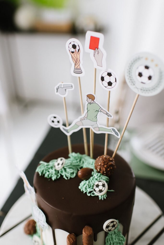 Oder ihr bestellt einfach eine Torte in Tamaras Online Shop und verziert sie mit den Cake Topper der Fußballparty Box.