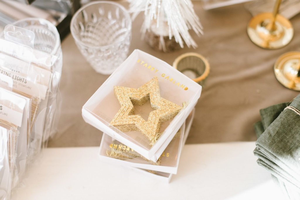 Die kleinen goldenen Sterne packen wir gleich noch aus. Sie bilden eine süße kleine Girlande, die wir über die Tafel legen oder an ein Fenster hängen.