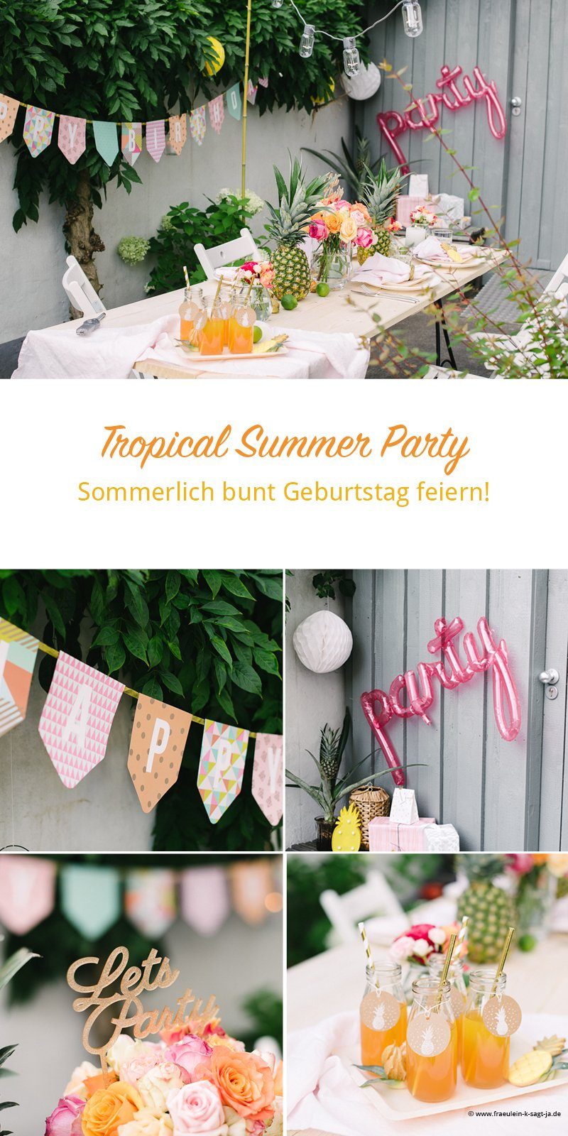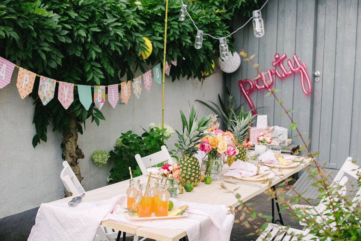 Ihr seid eingeladen zu dieser herrlich bunten und fröhlichen Geburtstagsparty! Tropical Partys sind ja der Sommertage-Trend in diesem Jahr, doch wer feiert schon am Strand unter Palmen? Klar, toll wäre das, aber in deutschen Reihenhausgärten wirken Flamingos doch eher irritierend, oder?