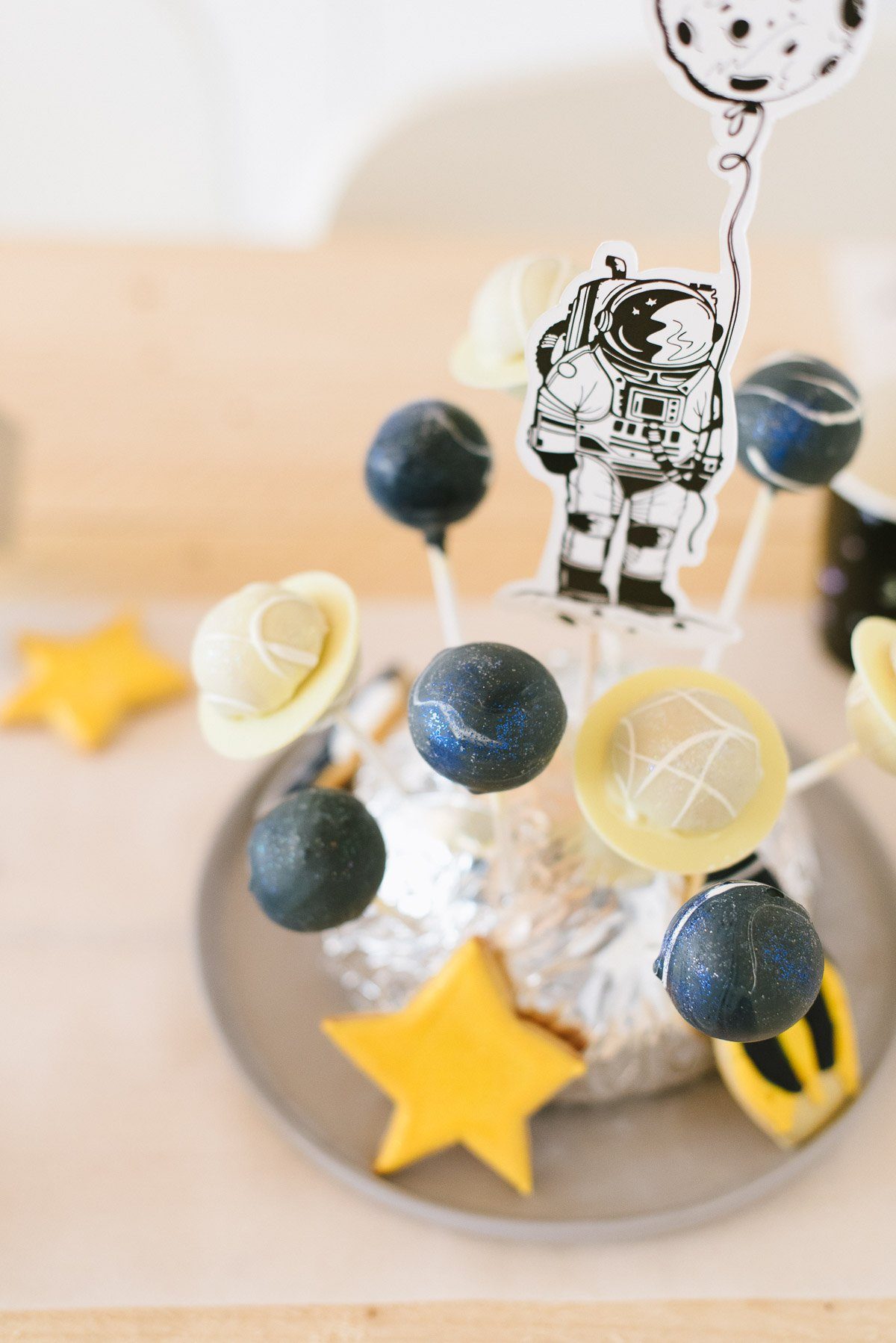 Die Konditorei Bengelmann hat uns bei diesem Shooting mit köstlichen Cakepops und einer Planeten-Motivtorte unterstützt. Beides sind absolute Highlights an diesem Astronauten Geburtstag!