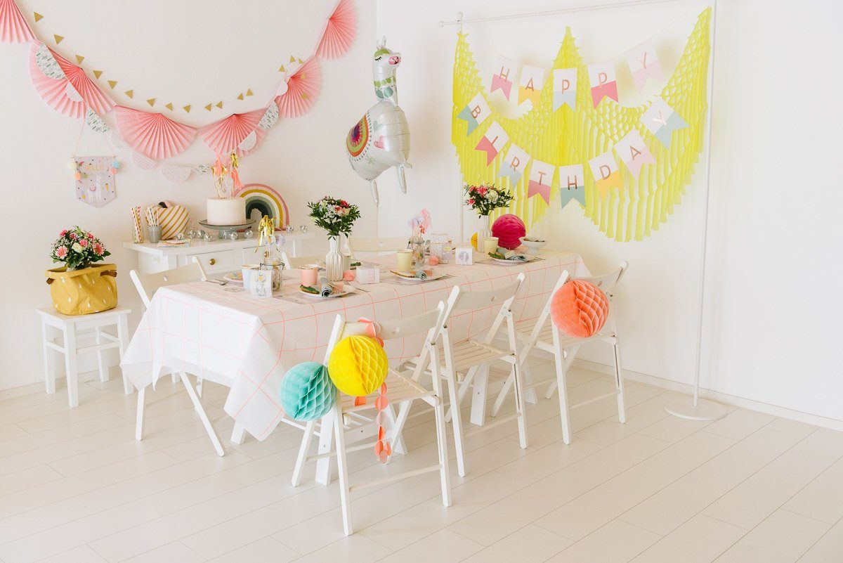 Pastellfarben und ein Lama – Dekoration einer Lama Party