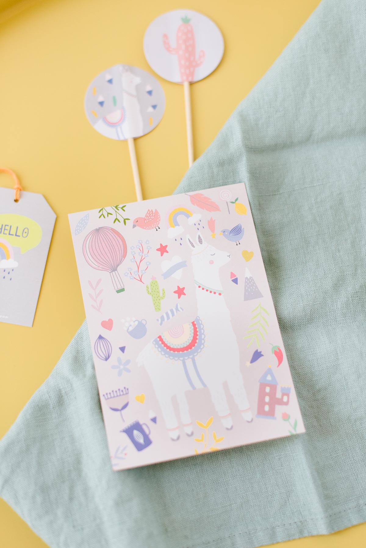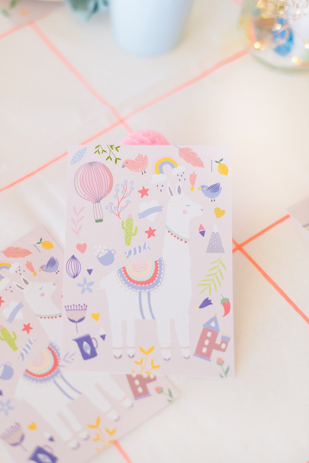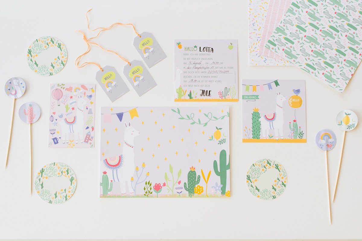 Was eine echte Lamaparty sein will, braucht selbstverständlich auch eine adäquate Einladung. Die quadratische Karte mit dem süßen Tier ist Teil der Lamaparty Box. Zehn Einladungen sind in jeder Box enthalten. Einfach den Lückentext ausfüllen und den Gästen überreichen.