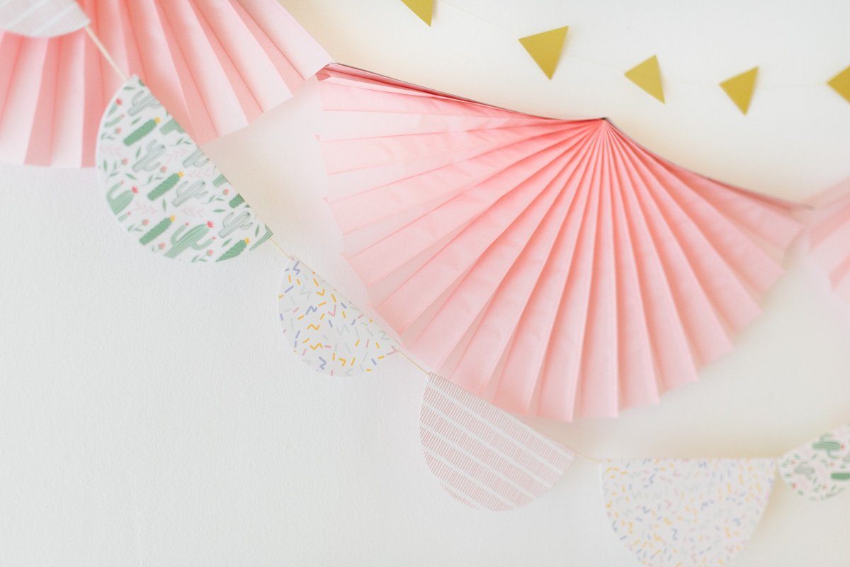 Mit der fröhlichen Farbpalette ist es ein Leichtes den Raum zu dekorieren. Fransengirlanden oder Faltrosettengirlanden erzeugen schnell eine ausgelassene Atmosphäre.