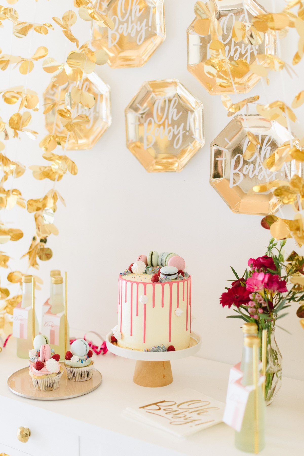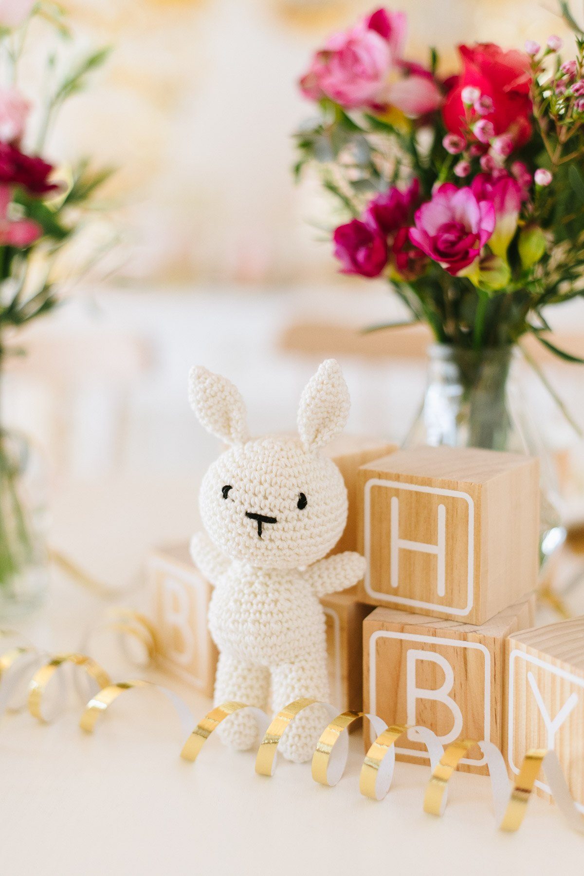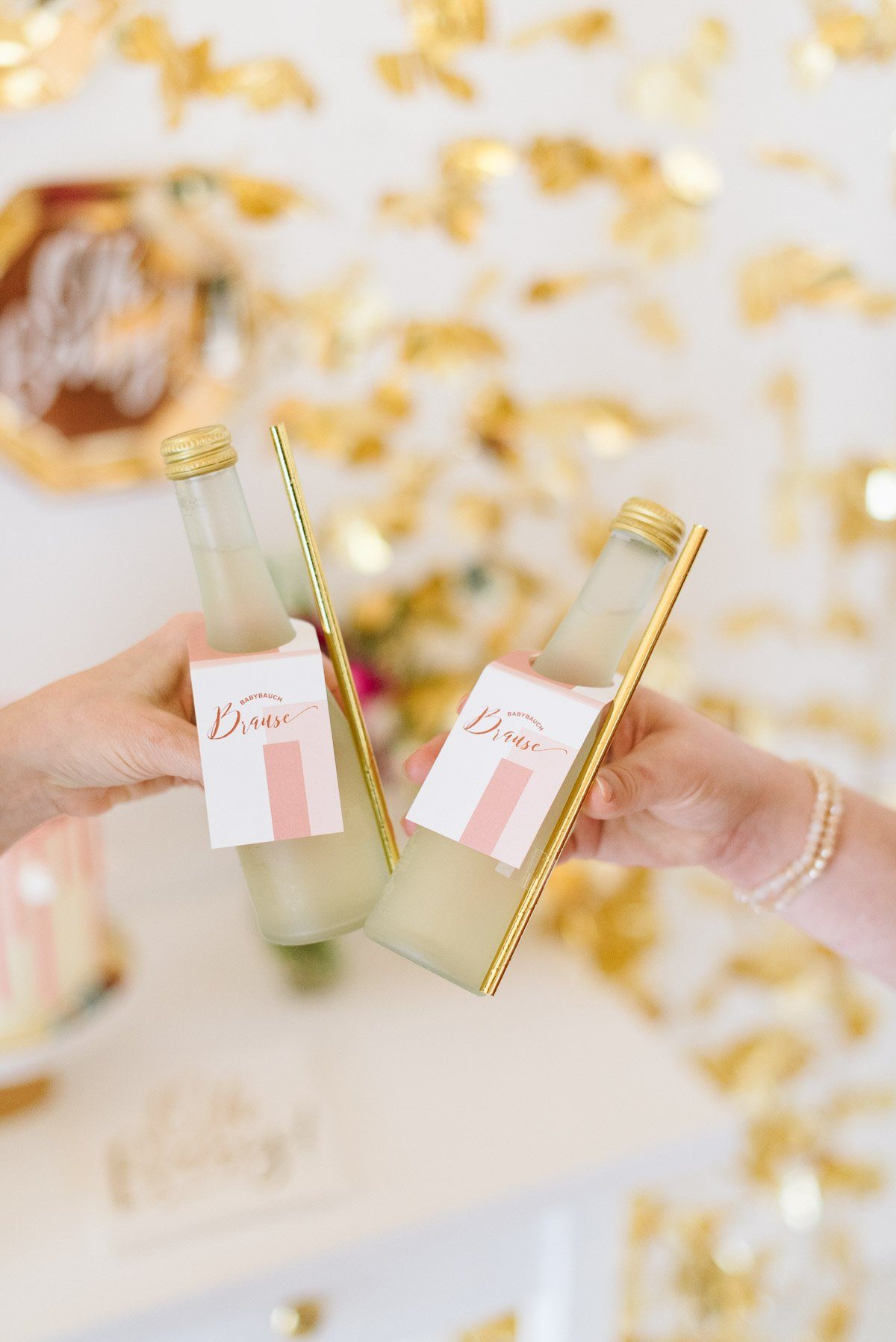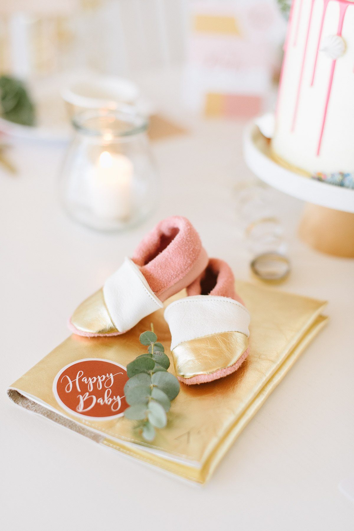 Ein schönes Ambiente mit liebevoller und dennoch moderner Dekoration schafft die perfekte Atmosphäre. Im Frl. K Shop findet Ihr viele coole Dekorationselemente für eine Babyparty. Gold spielt auch hier als Trendfarbe eine große Rolle! Die süßen Holzwürfel sind nicht nur Dekoration. Sie können auch als Gästebuch genutzt werden, in dem sich alle mit einem Gruß darauf verewigen.