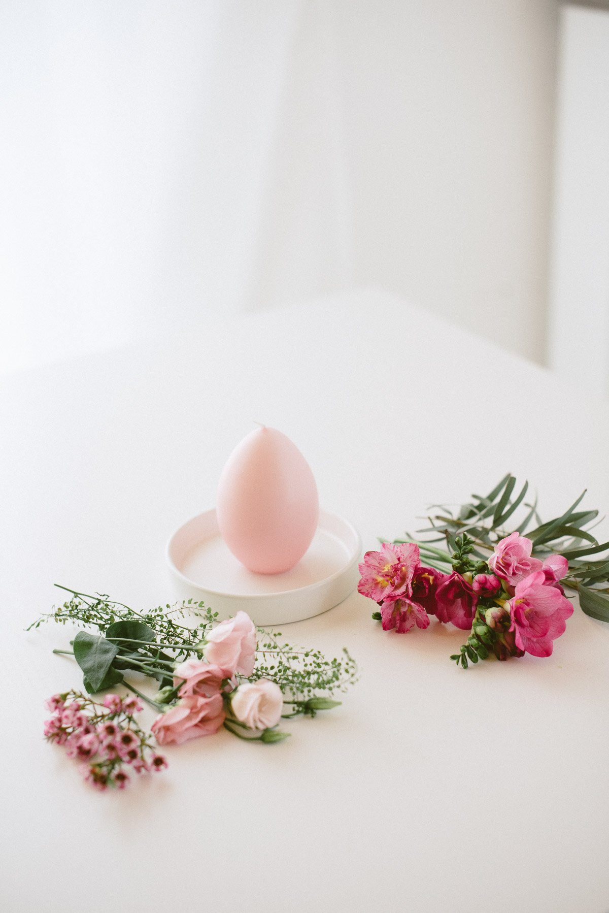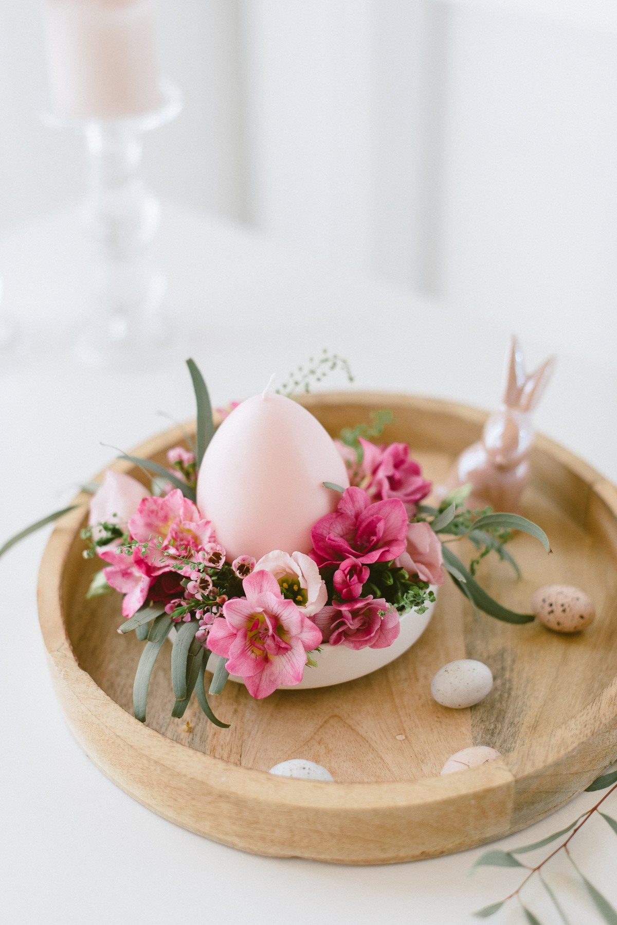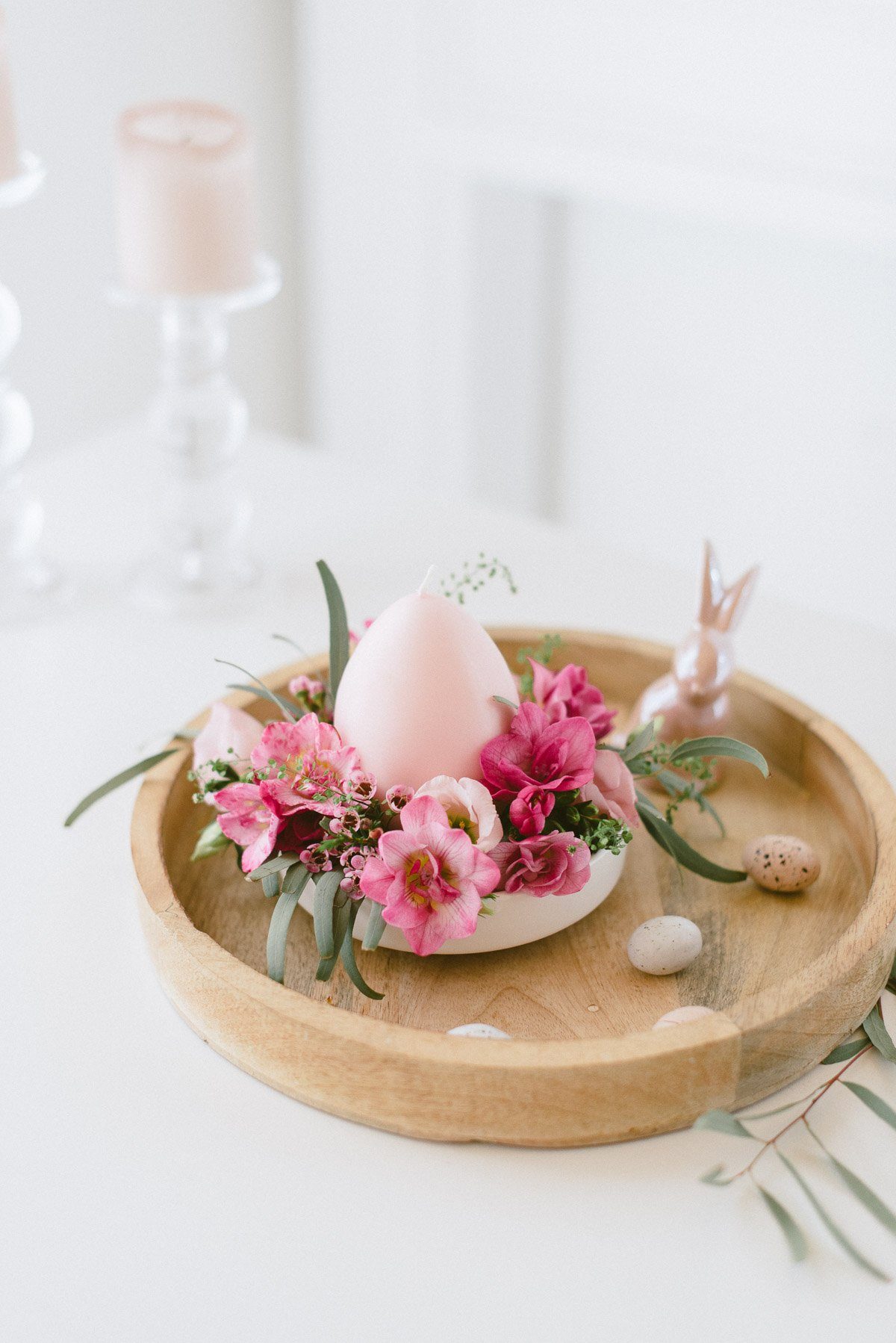 Osterdekoration – floraler Kerzenschmuck