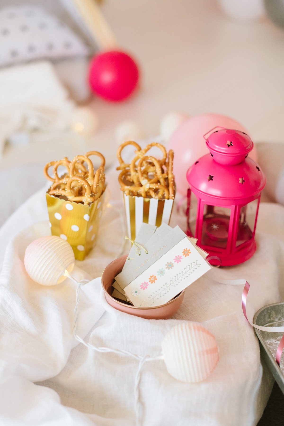 Betthupferl Bar mit Ballongirlande als Deko Highlight