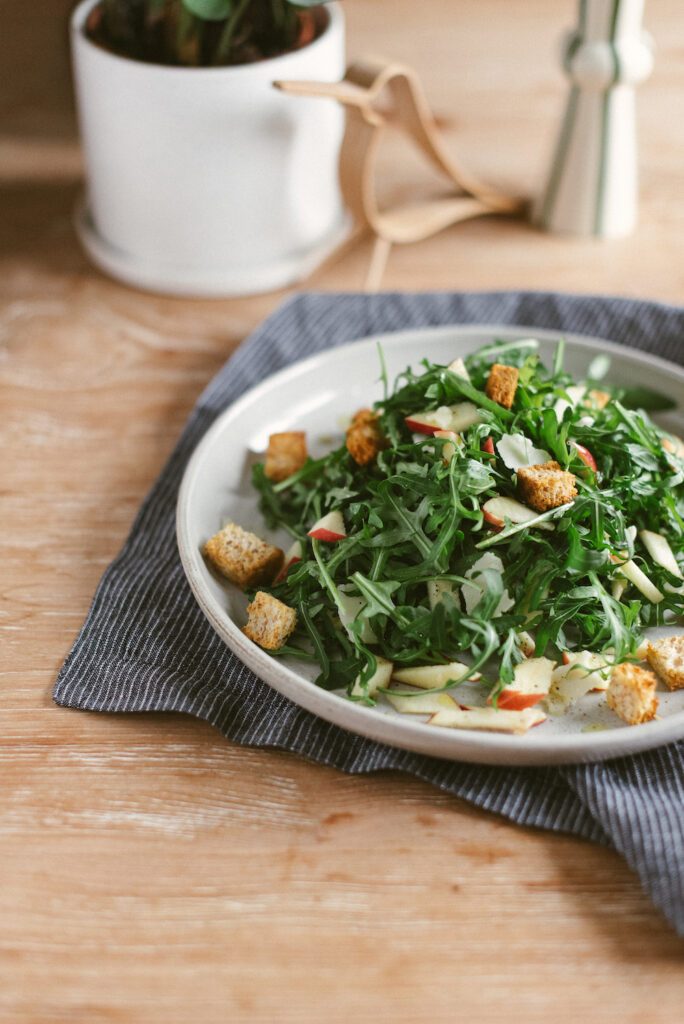 Die Zeit der langweiligen Glasschüsseln ist vorbei. Salate serviert man heute gerne auf flachen Servierplatten, flachen Schalen oder großen Tellern.