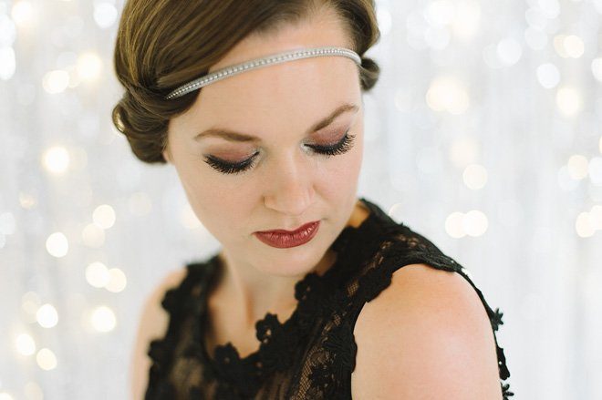 Maren’s Styling war an die goldenen 20er angelehnt. Ein bisschen Gatsby mit einer gehörigen Portion Eleganz. Lange Wimpern und ein Bordeaux roter Mund – phantastisch! Der kurze Bob wurde durch die lebendigen Wellen zur festlichen Frisur.
