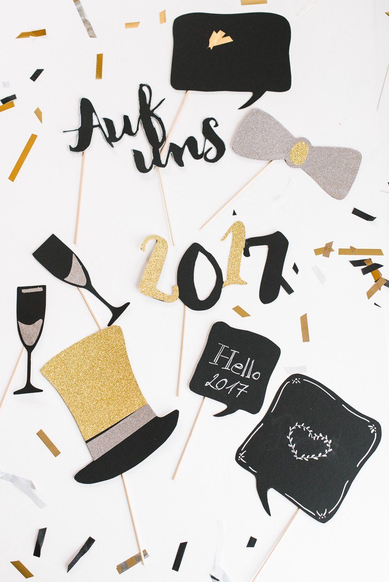 Was immer, immer geht ist ein Photo Booth! Lustige Bilder mit Freunden zum Jahresabschluss sind eine herrliche Erinnerungen und lassen sich ja auch ganz unkompliziert mit dem Handy fotografieren. Mit ein paar, bestenfalls zur Party passenden Accessoires, wird Spaß dann richtig groß. Vielleicht bastelt Ihr anschließend sogar ein kleines Album für alle. Wäre ne tolle Erinnerung!