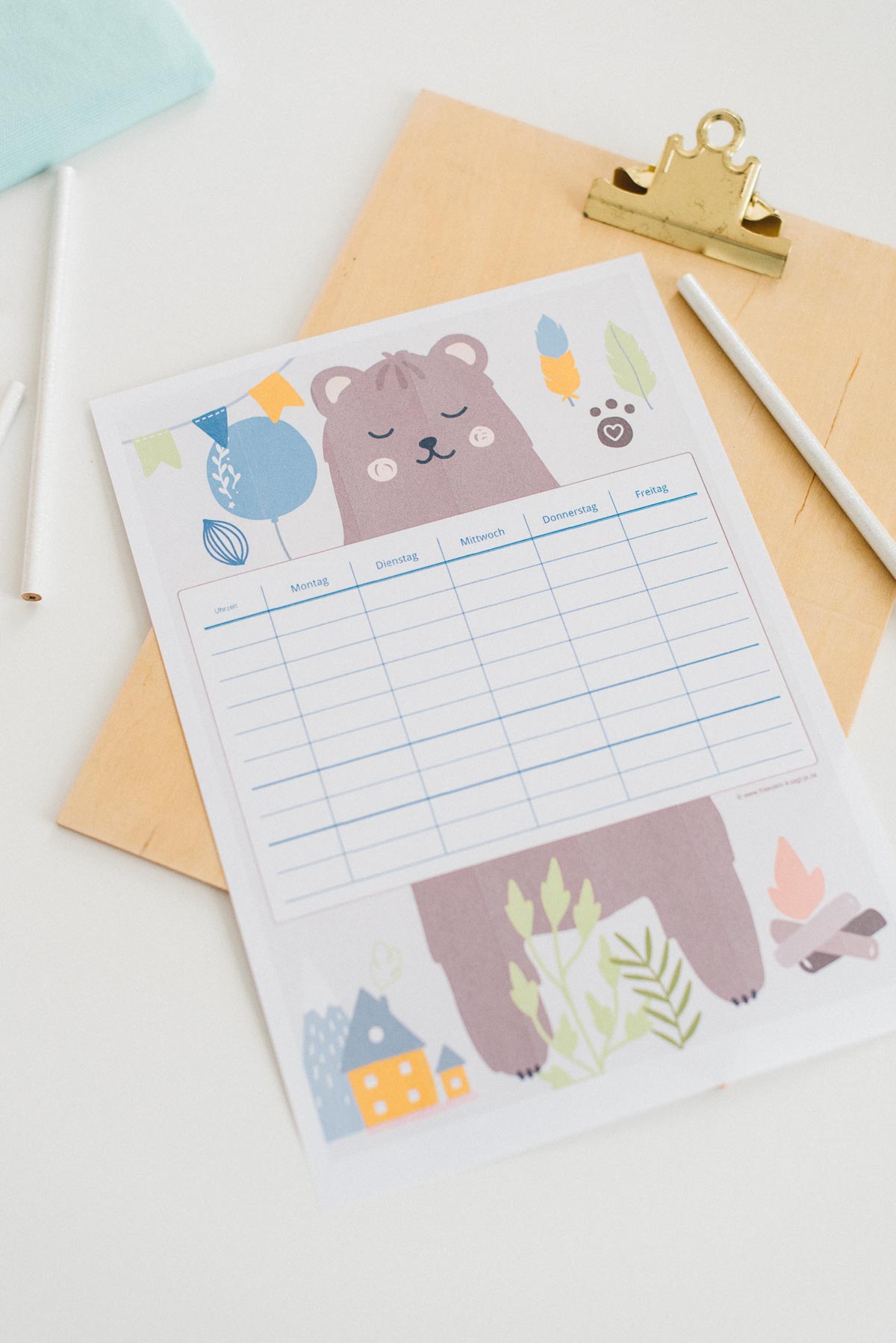 Der Stundenplan in zarten Pastellfarben und süßem Lama macht schon am Morgen gute Laune. Der beste Freund des Lamas ist übrigens der kleine Bär. Auch er bekommt einen eigenen Stundenplan!