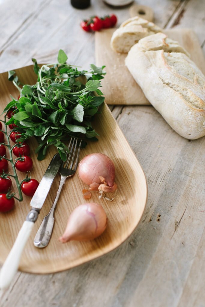 So simple und gut wie das Gericht, darf auch das Servieren sein. Ein schönes Holzbrett oder flache Tabletts bis hin zu Schalen sind perfekt dafür geeignet.