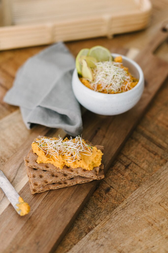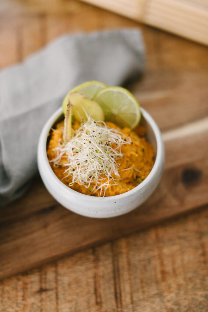 Rezept: Süßkartofffel-Ingwer Aufstrich mit frischen Sprossen