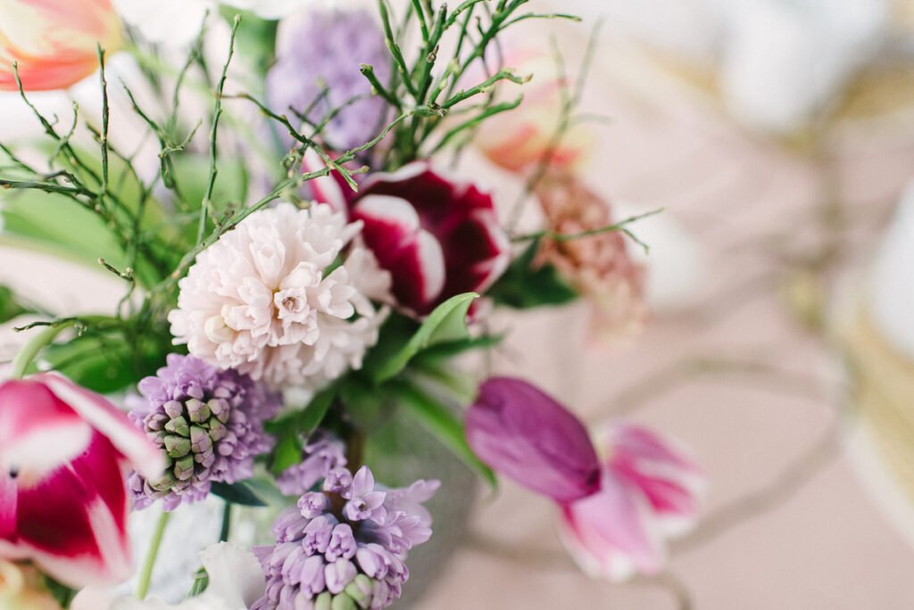 An Ostern darf der Frühling auf dem Tisch einziehen! Lässige Zweige auf dem Tisch, Veilchen und natürlich Tulpen dürfen nicht fehlen! Sogar eine Tischdecke darf heute mal auf den Tisch, ebenso wie die schönen Leinenservietten, die dem Ganzen eine festlichere Note geben.